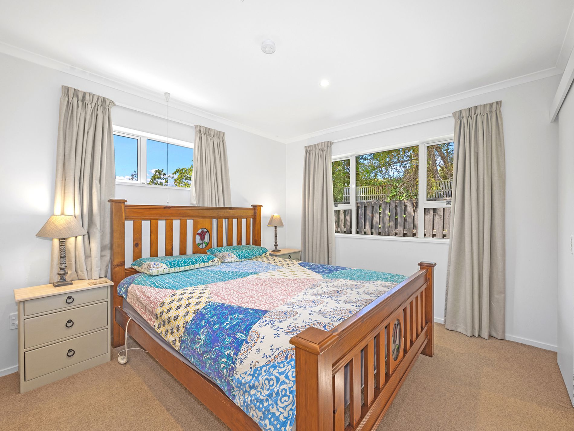 It features two double bedrooms, each with excellent storage, and an open-plan kitchen and dining area that flows through to a welcoming lounge. The lounge opens out to a fully-fenced, sheltered courtyard — an ideal spot for relaxing or entertaining.