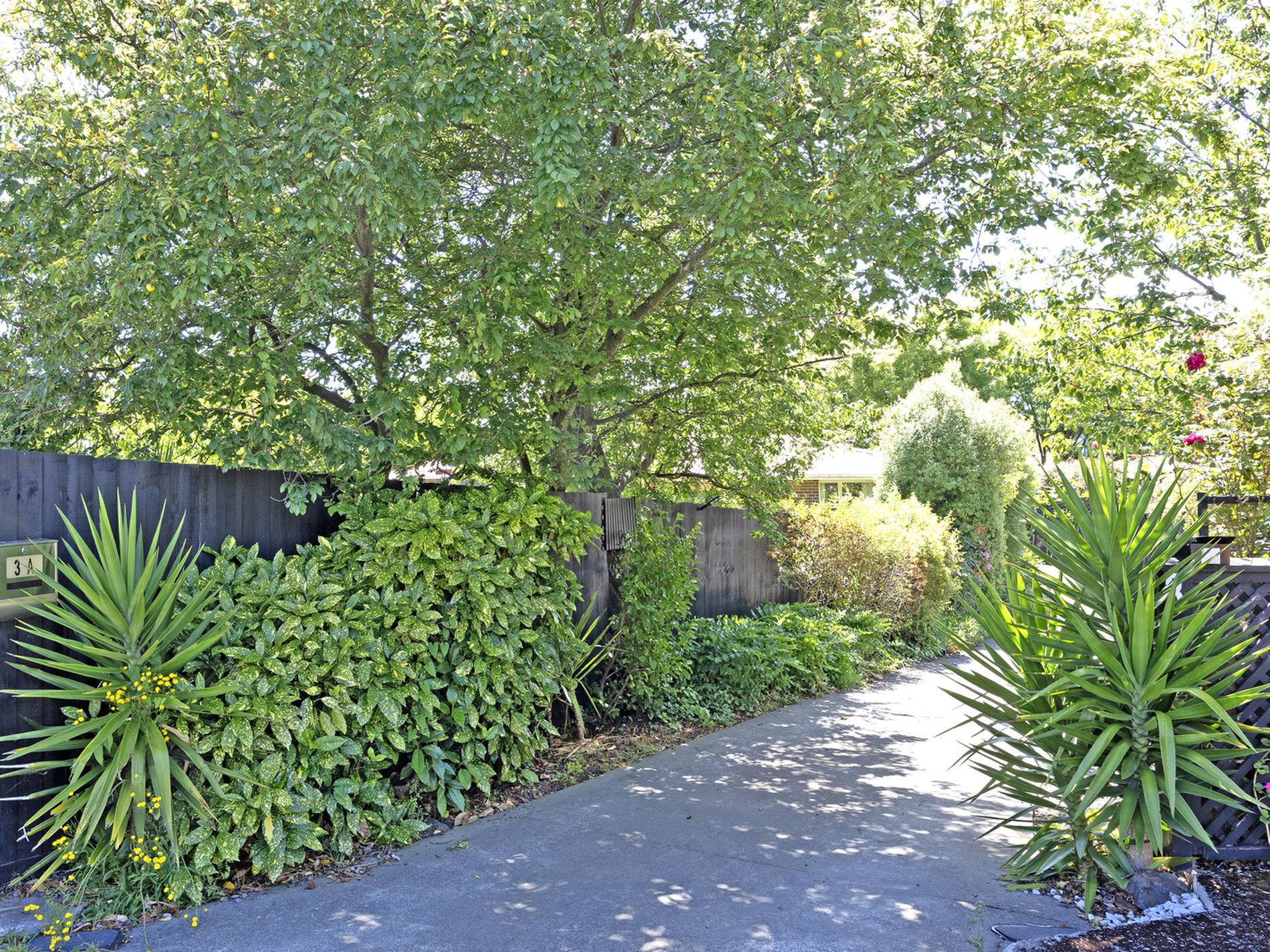 > Set down a long private driveway